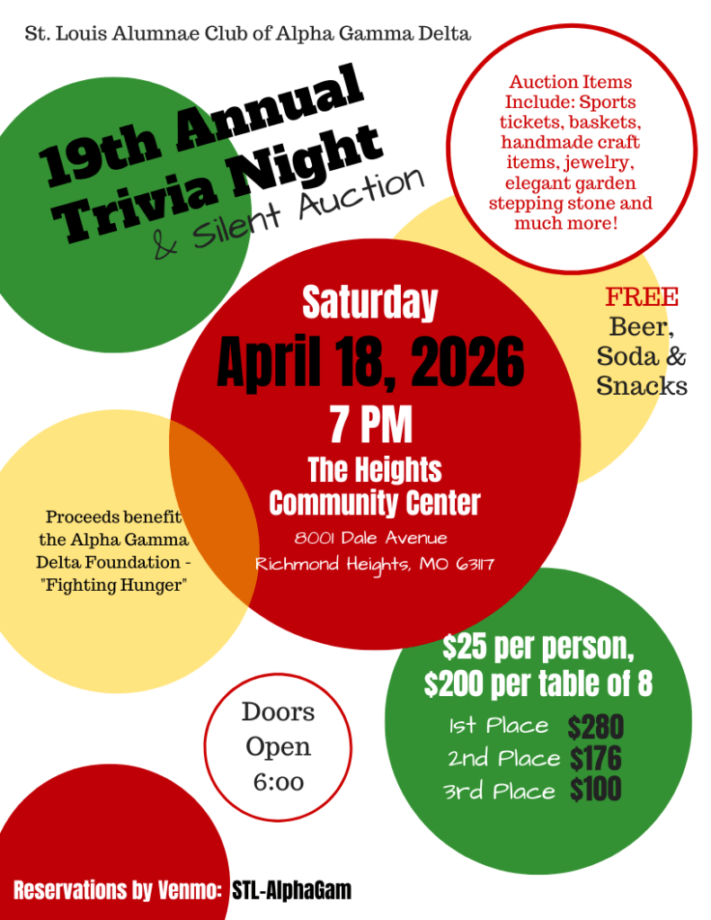 Our 2026 Trivia Night is Saturday, April 18 at The Heights in Richmond Heights (8001 Dale Avenue, 63117).